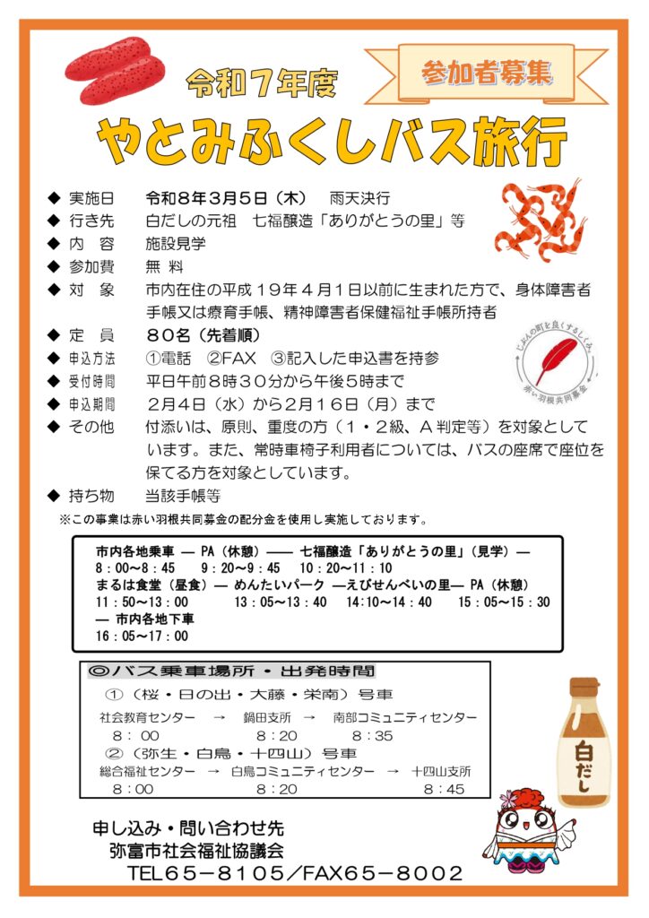 令和7年度 やとみふくしバス旅行 参加者募集のお知らせ