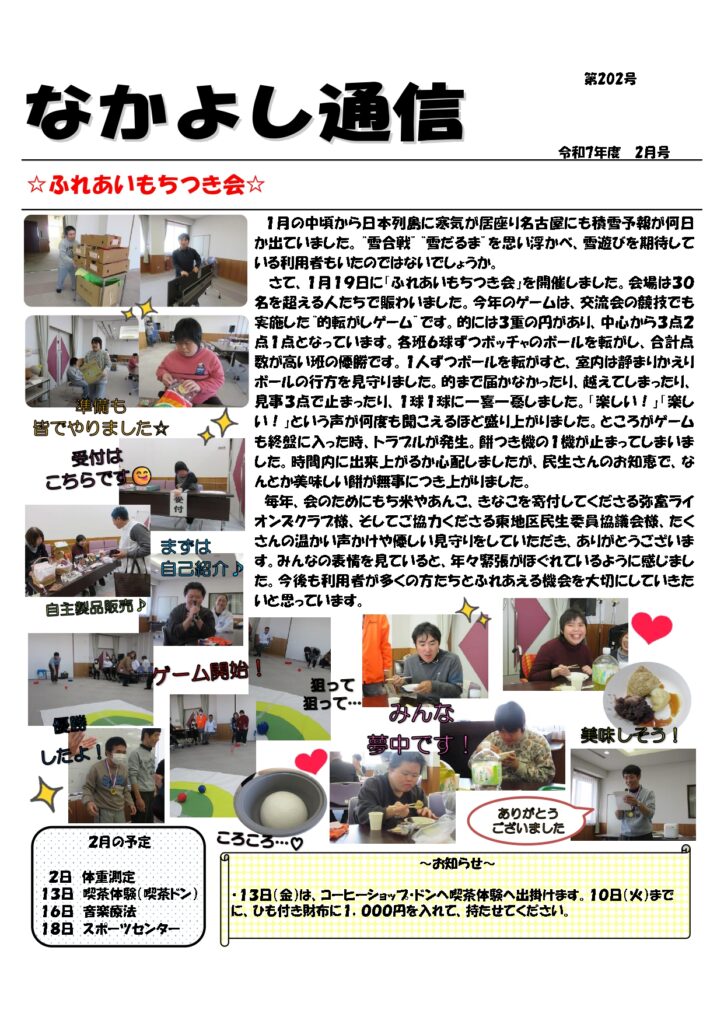 【『地域活動支援センター十四山』なかよし通信 2月号(第202号)】