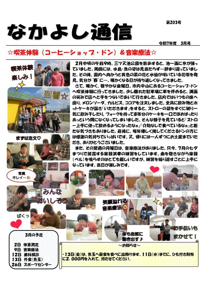 【『地域活動支援センター十四山』なかよし通信 3月号(第203号)】